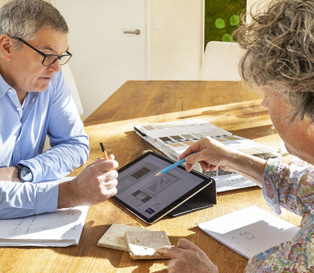 In einem gemeinsamen Gespräch finden wir die richtigen Materialien und Oberflächen und besprechen in Ruhe alle Schritte, die für einen reibungslosen Projektablauf wichtig sind.