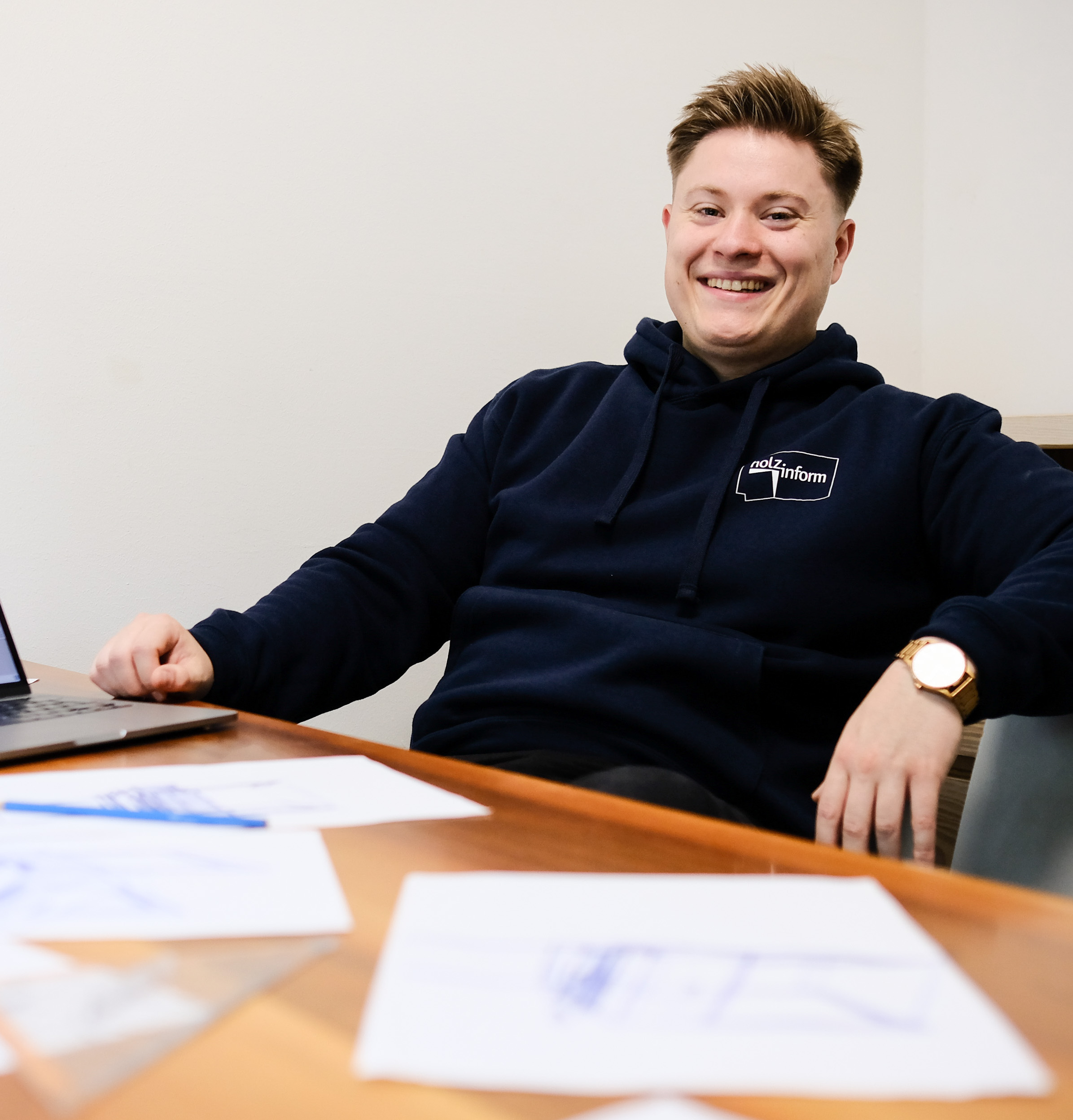 Mit der Gesellenprüfung 2024 in der Tasche begann für mich ein neues Kapitel mit vielen lehrreichen Aufgaben. Bei Holzinform bringe ich als frischgebackene Gesellin neuen Wind und den Willen mit, traditionelle Techniken mit modernen Verfahren zu verbinden. Ich freue mich darauf, gemeinsam mit meinem Team spannende Projekte zu realisieren!