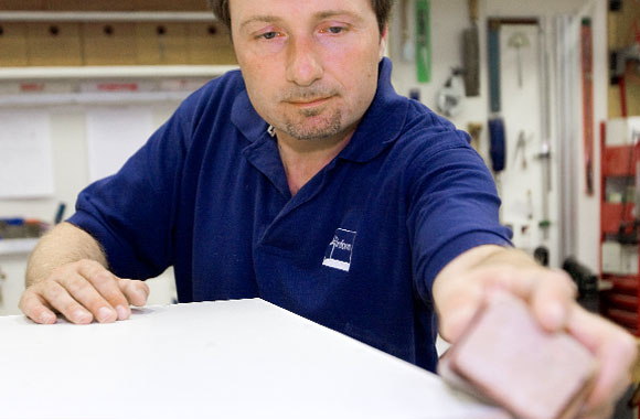 Mit dem Auge für Passgenauigkeit und viel Fingerspitzengefühl für makellose Oberflächen perfektionieren wir Ihr Möbel in reiner Handarbeit.